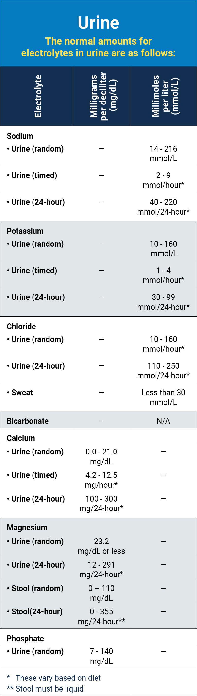This infographic lists the normal (typical) ranges for each electrolyte in your urine.