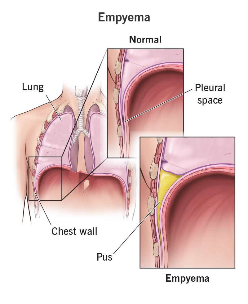 Empyema is a condition in which you have pus in your pleural space. It usually causes symptoms that affect your chest and breathing. Though it’s not common, if a healthcare provider diagnoses empyema early, your chances of making a full recovery are good. However, empyema can be fatal if you don’t receive treatment or have other conditions.