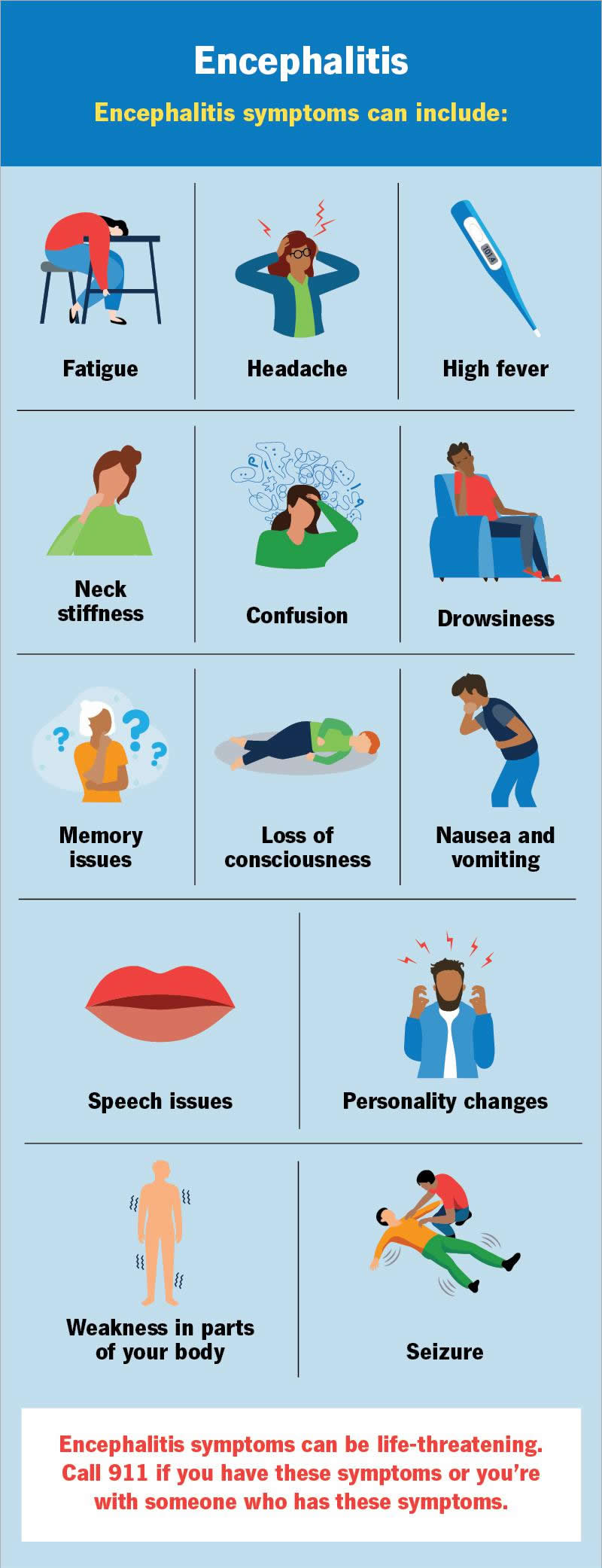 Encephalitis is brain inflammation (swelling). Causes include viral infections, infections from insect bites or an autoimmune reaction that affects your brain. It can be life-threatening or cause long-term complications. Treatment varies, but most people require hospitalization so they can receive intensive treatment, including life support.