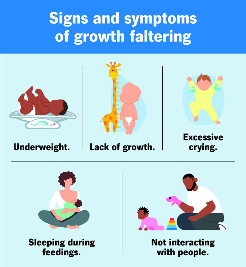 Call your pediatrician if you’re concerned about your child’s growth or any aspect of their development. Growth faltering doesn’t always have obvious signs or symptoms. That’s why it’s important to take your child to all their routine well visits so their pediatrician can monitor their growth.