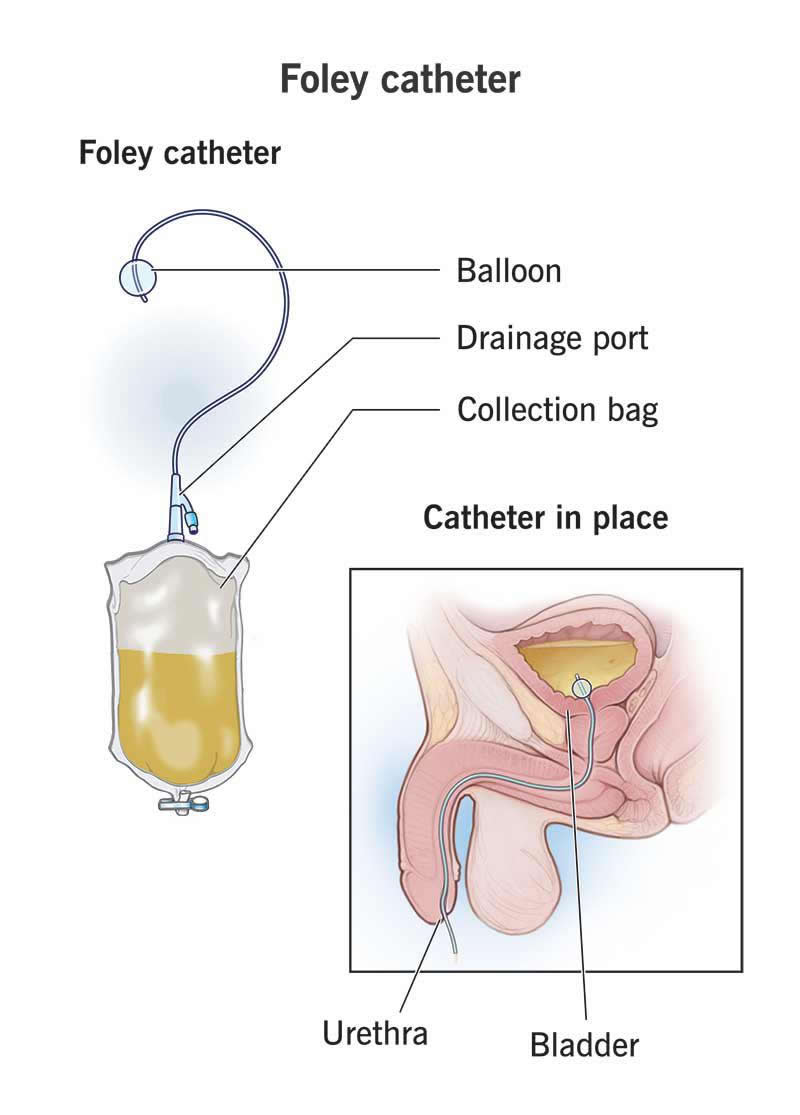 A Foley catheter is a medical device that helps drain urine from your bladder. Healthcare providers use Foley catheters if you have a condition that makes it difficult or impossible to pee. You may also need a Foley catheter while your body heals after surgery. A provider can teach you how to insert and clean a Foley catheter.