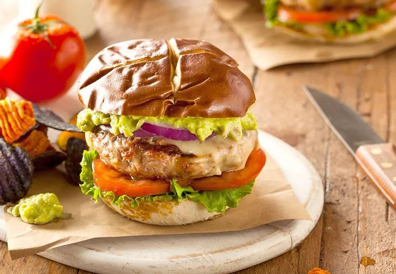 You won’t miss the bun with these moist and flavorful turkey burgers. A dollop of avocado cream is the perfect complement.
