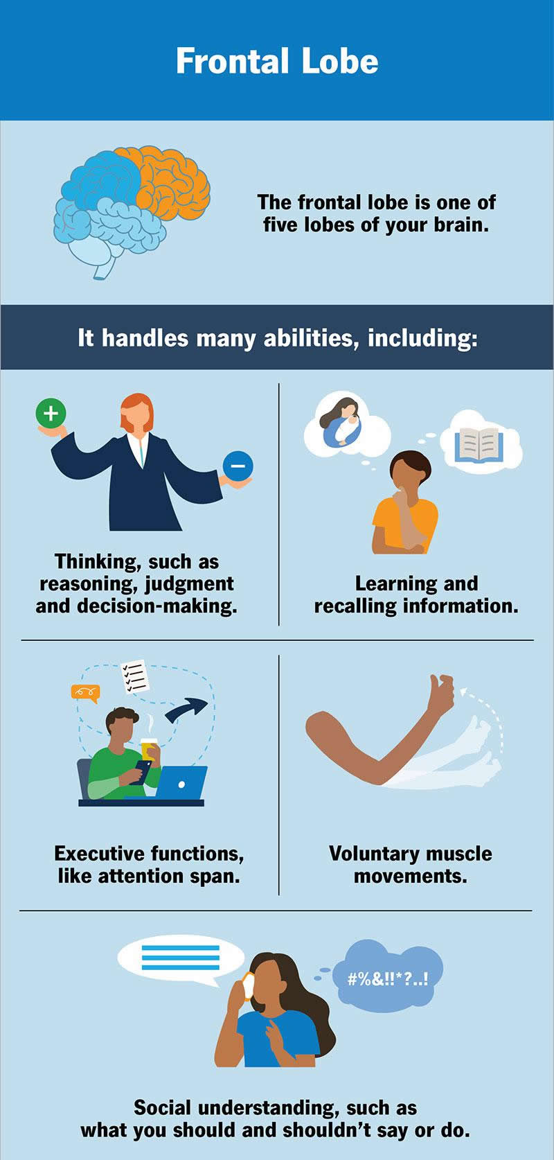 When you think about your frontal lobe, you’re telling a part of your brain to think about itself. Your frontal lobe is one of the most important sections of your brain. It controls or manages many abilities you use throughout your everyday life. It’s also home to areas that control your personality, emotions, judgment and more. Caring for your frontal lobe and getting treatment for conditions that affect it can make a big difference in how it works and contributes to your life.
