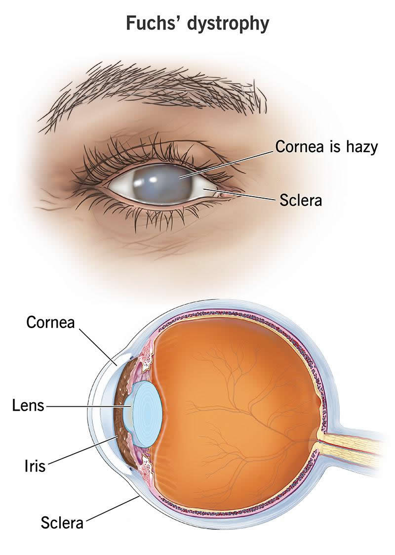 Fuchs’ dystrophy is an eye disease that affects your corneas. In this disease, certain cells in your corneas die off, causing your corneas to swell with fluid. This can cause blurred vision. Without treatment, it could lead to vision loss. Depending on how severe it is, your provider may recommend a corneal transplant.