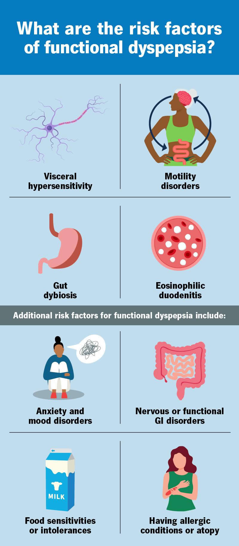 Additional risk factors for functional dyspepsia include: