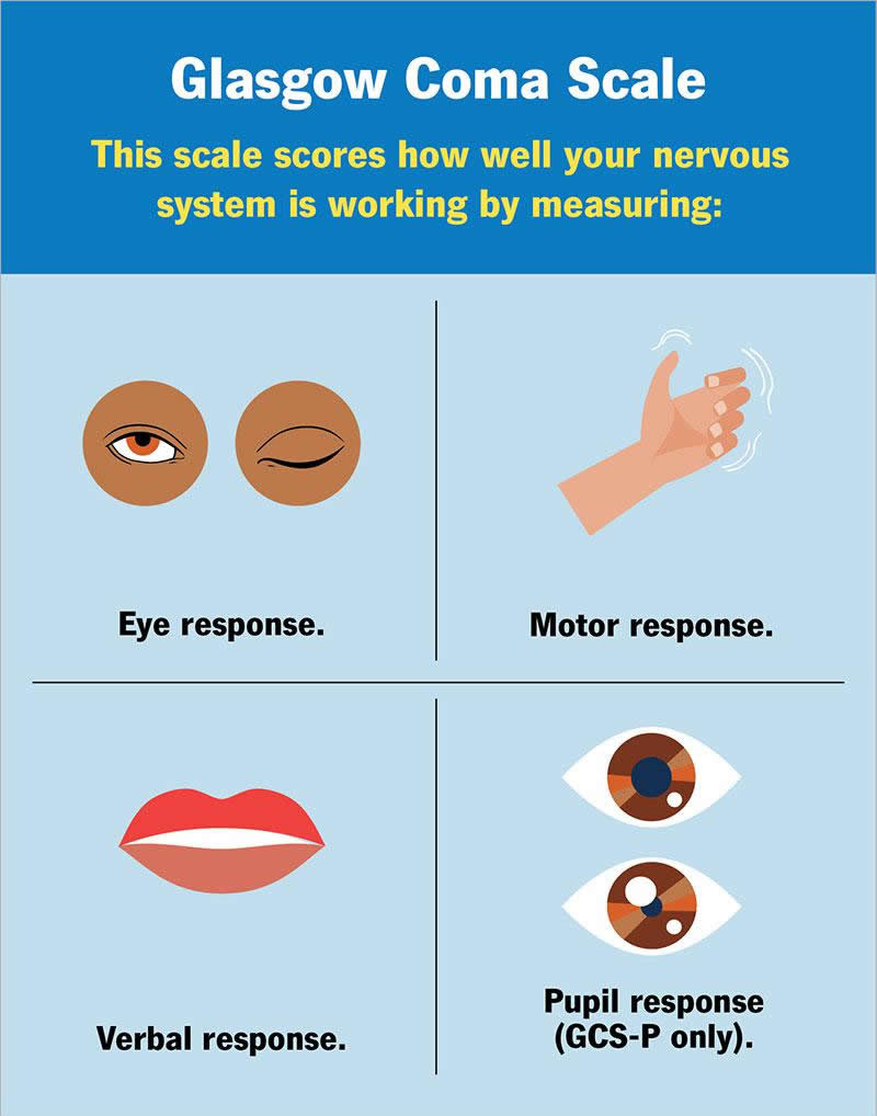 The scale also can help with conditions that don’t involve injuries, such as low blood sugar (hypoglycemia), poisoning or after a seizure.