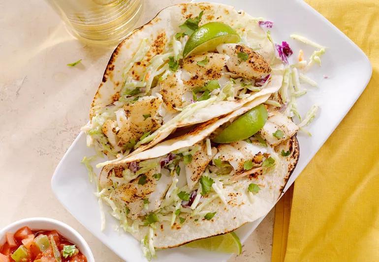 Looking for a satisfying, healthy meal but short on time? Look no further than these 5-minute fish tacos. Choose your favorite firm white fish fillets, add seasoning, build your tacos and ... done! A quick and low-fat meal you’ll love.