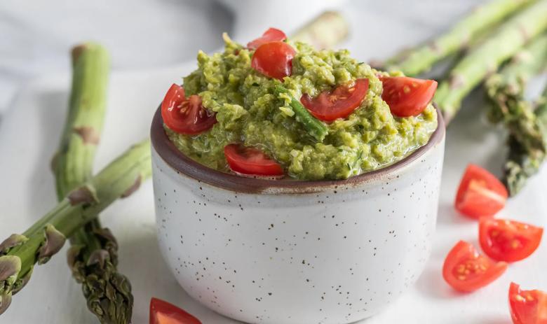 If you’re looking for a lower-calorie take on guacamole, this is it. This Mexican asparagus dip swaps out avocados in favor of asparagus. That means fewer calories, plenty of gut-healthy prebiotics, a hearty dose of vitamin K and lots of B vitamins. Pair it with your favorite dipping veggies to up the nutritional ante.