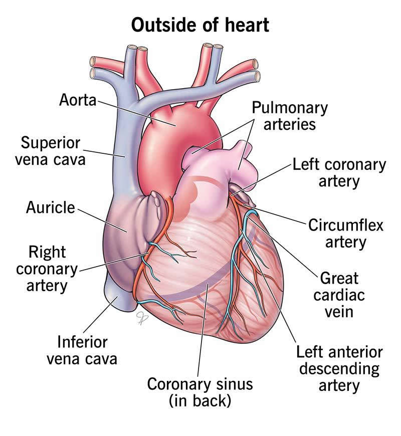 Your heart receives nutrients through a network of coronary arteries. These arteries run along your heart’s surface. They serve the heart itself and include the: