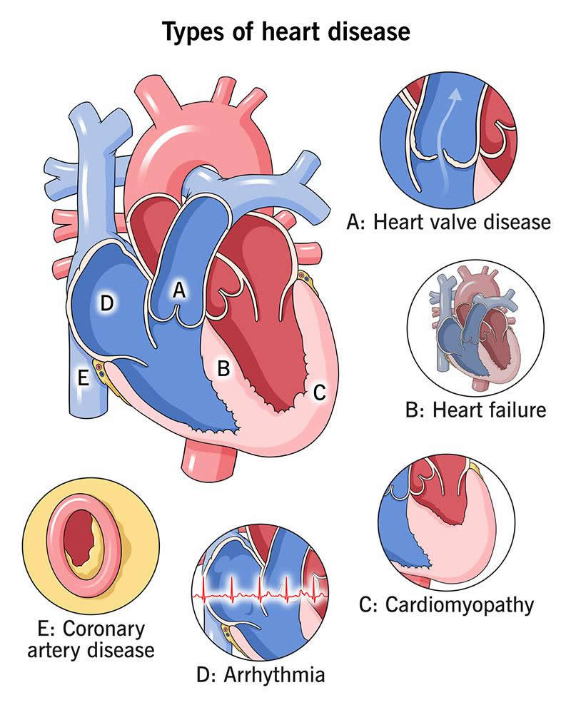 Heart disease is a variety of issues that can affect your heart. When people think about heart disease, they often think of the most common type — coronary artery disease (CAD) and the heart attacks it can cause. But you can have trouble with different parts of your heart, like your heart muscle, valves or electrical system.