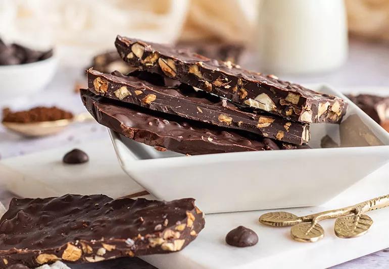 Chocolate bark with espresso and toasted nuts