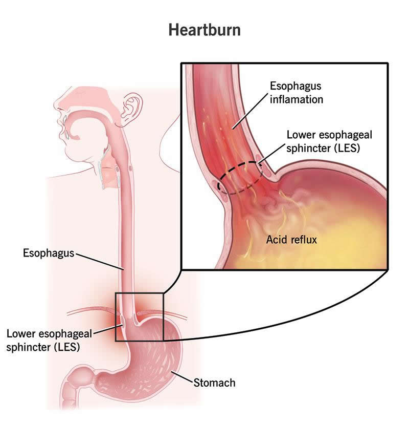 When related to GERD, heartburn occurs when stomach juices, including acids and enzymes, backwash into your esophagus. Your stomach has a thick mucous lining that protects it from these substances, but your esophagus doesn’t. A valve at the bottom of your esophagus called the lower esophageal sphincter is supposed to keep stomach contents from coming back up. But sometimes it’s weak or doesn’t close all the way.
