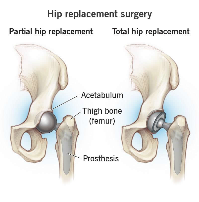- Partial hip replacement: These are very rare. Your surgeon will replace only part of your hip. These are usually only done to repair broken hips or remove certain types of tumors.