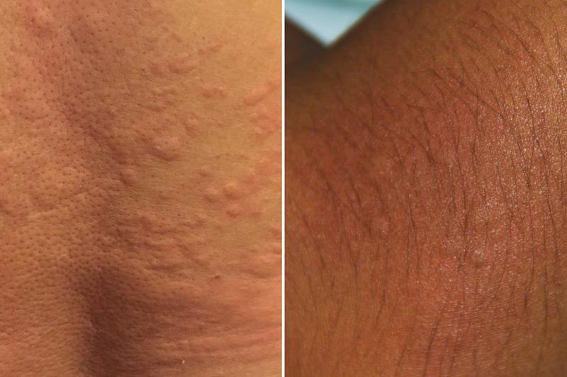 - Raised welts or bumps on your skin. The bumps may look reddish on lighter-colored skin.