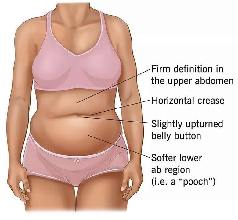 - Good, firm definition in your upper abs but a significantly softer lower ab region (that is, a “pooch”).