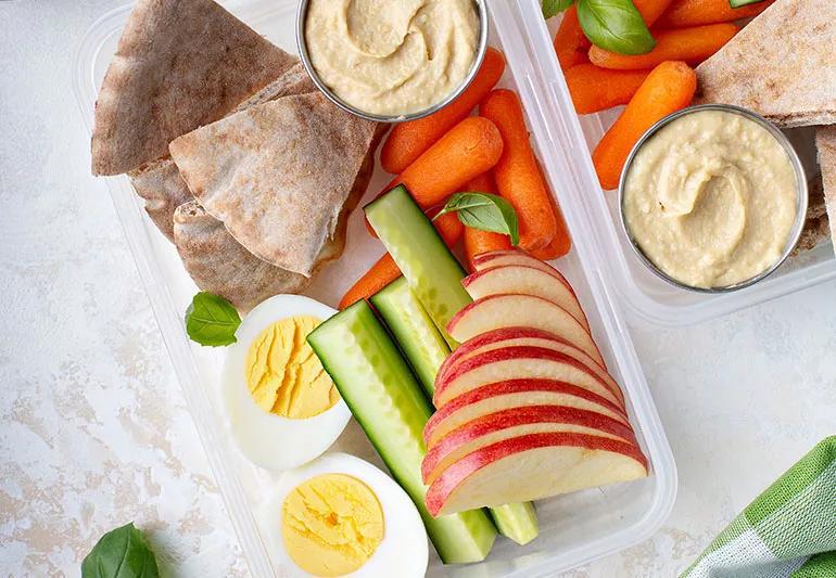 Keep some healthier snack options handy for when you’re feeling peckish. Almonds, for instance. Beef jerky, pretzels, protein bars are ideal, too. Basically, anything that is easy to store and eat on the go.