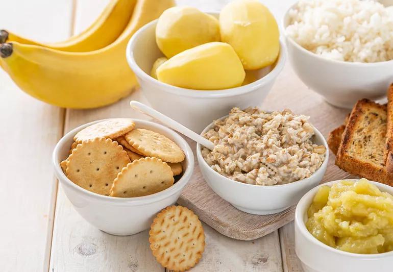 This is sometimes referred to as the BRAT (bananas, rice, applesauce, toast) diet. And it’s important to note that the BRAT diet should be used sparingly, as it lacks vital nutrients like fiber, protein, calcium and vitamin B12.
