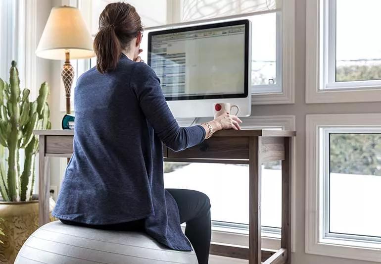 If these aren’t options for you, innovate! You can do a DIY standing desk by stacking several discarded corrugated boxes placed on top of each other to achieve the right height for a computer screen, and other boxes for your keyboard and mouse. Or use books to raise your computer to a higher level.