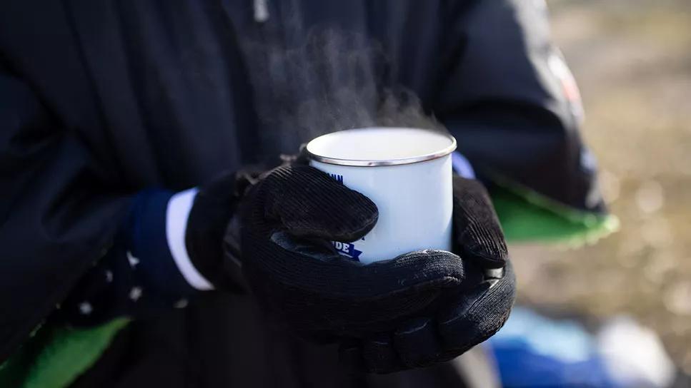- Drink a warm drink. Nothing warms your insides faster than a nice hot cup of tea (or cocoa!). If you’re going to be outside or you’re coming in for the first time, drinking a nice hot drink can help raise your internal temperature more moderately.