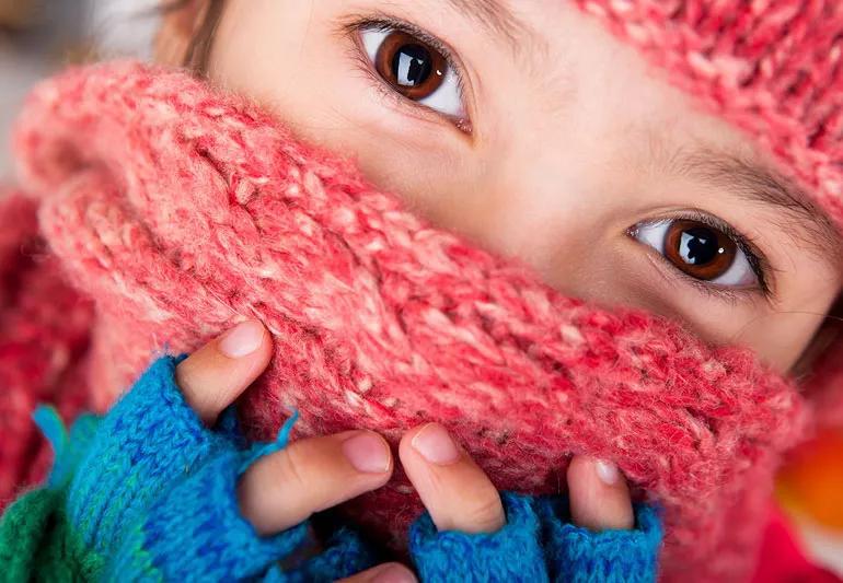 A warm scarf tied over your child’s mouth and nose can make the air they breathe a little less cold and dry.
