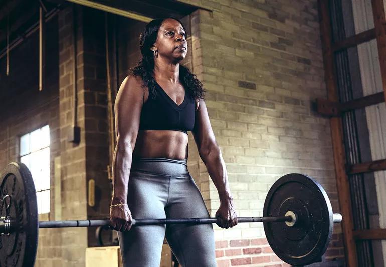 “If you’re injured or living with a pre-existing issue, there are certainly some movements that you’ll want either avoid or modify, especially if you’re living with vertigo or a balance condition. But you can still train with a barbell. I just recommend not training unsupervised.”