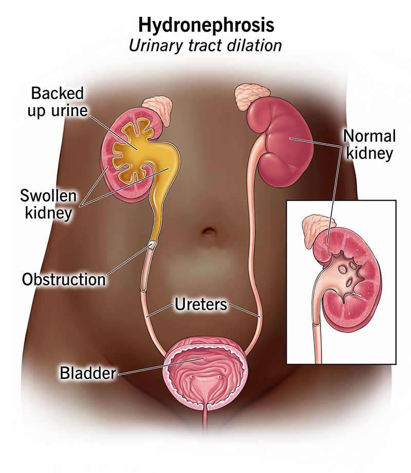 Hydronephrosis (upper urinary tract dilation) is a condition where something keeps pee (urine) from flowing from your kidney to your bladder. When that happens, one or both of your kidneys swell.