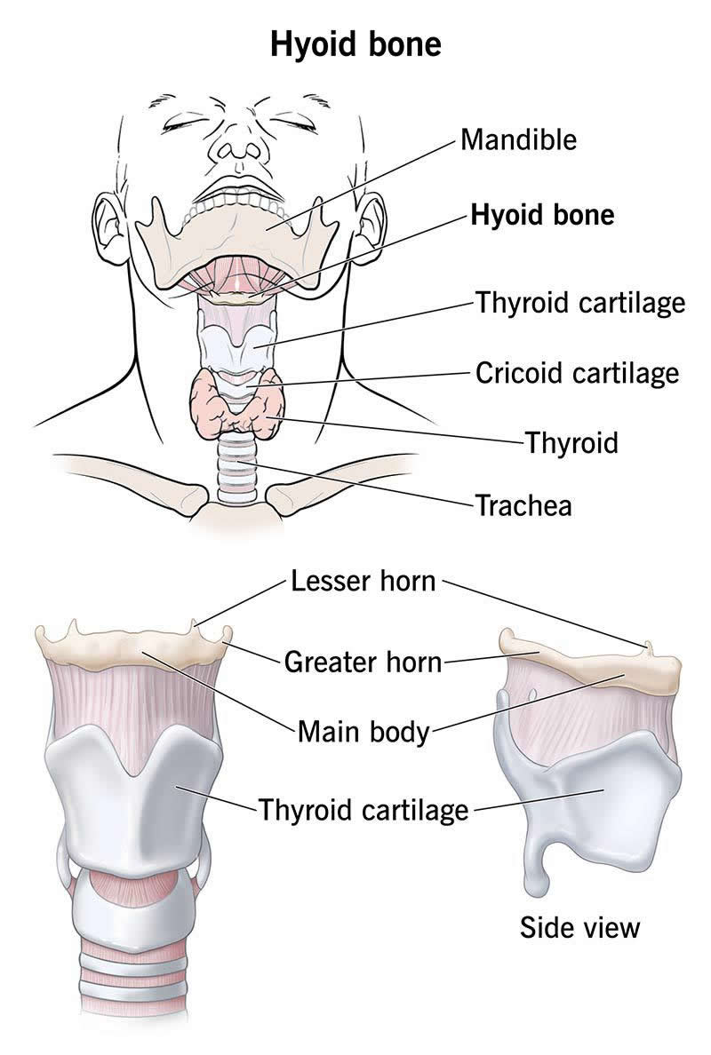 Your hyoid bone plays a key role in speaking, swallowing and breathing. It also provides support for several structures around it, like your: