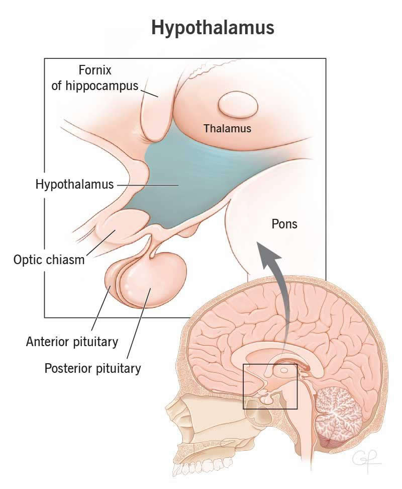 Your hypothalamus also corrects any imbalances in body temperature, stress and your daily bodily rhythms.