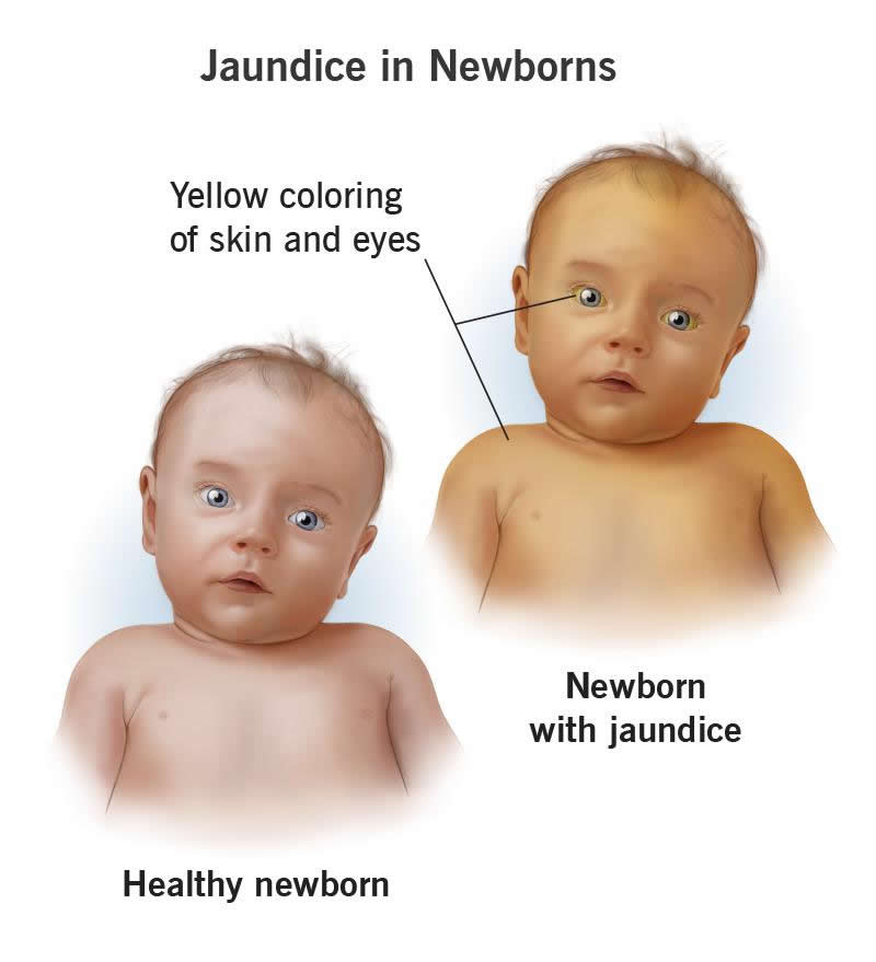 Jaundice in newborns is the yellow coloring in an infant’s skin. Jaundice occurs when bilirubin (pronounced “bil-ih-ROO-bin”) builds up in your baby’s blood. Hyperbilirubinemia is the medical term for this condition.