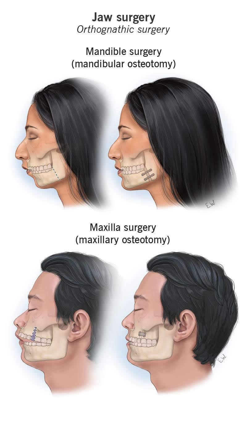 Corrective jaw surgery (orthognathic surgery) changes the structure of your jawbone and brings your upper and lower jaws into proper alignment. Misaligned jaws can negatively impact your bite and make eating and speaking more difficult.