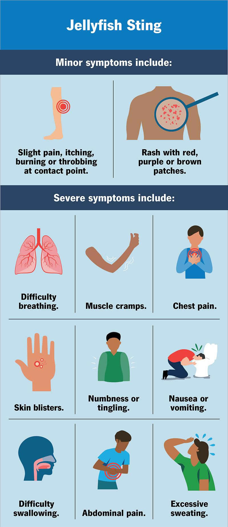 Depending on the type of jellyfish and how much of your skin touches the venom, the sting can cause pain or other serious health problems. Some jellyfish stings can be life-threatening. It’s important to get medical help if you have severe symptoms after a jellyfish sting.