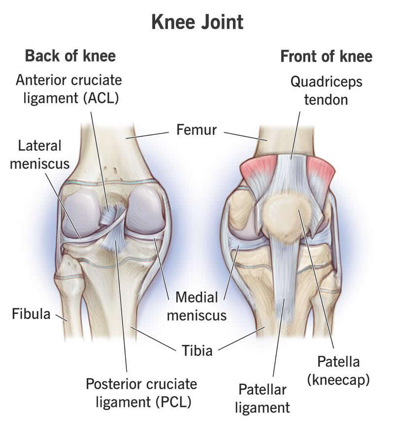 The knee joint is the biggest joint in your body. It connects your thigh bone (femur) to your shin bone (tibia). It helps you stand, move and keep your balance. Your knees also contain cartilage, like your meniscus, and ligaments, including your LCL, MCL, ACL and PCL.