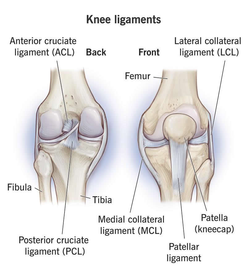 Knee ligaments are bands of tissue that connect your thigh bone to your lower leg bones. They can be classified into two main groups: collateral ligaments and cruciate ligaments. Sprained and torn knee ligaments are common, especially among athletes. They may be mild, requiring rest and simple treatment, to severe, requiring surgery.