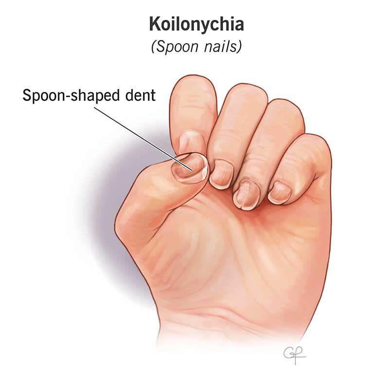 Sometimes, koilonychia points to another medical condition. Spoon nails can be a symptom of: