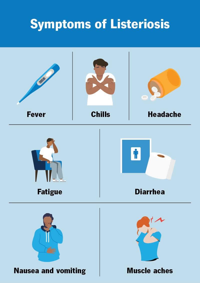 Listeriosis is an illness you can get from eating something contaminated with Listeria bacteria. Foods that can contain Listeria include deli meats, hot dogs, and soft cheeses. Common symptoms include fever, headache and diarrhea. Listeria can be dangerous if you’re pregnant or have a weakened immune system. It’s treatable with antibiotics.