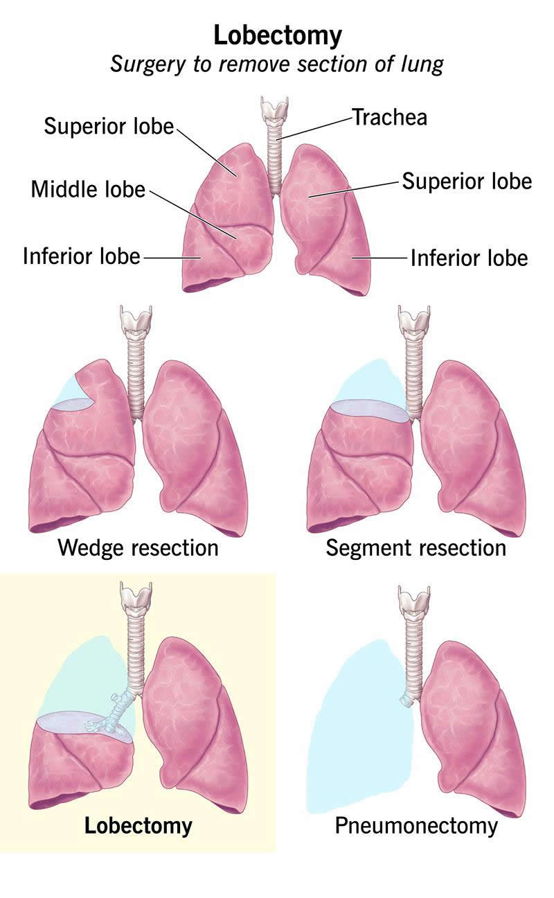 A lung lobectomy (pulmonary lobectomy) is a surgery to remove a section (lobe) of your lung. This is a common surgery for treating non-small cell lung cancer in its early stages. It also treats lung carcinoid tumors and small cell lung cancer.