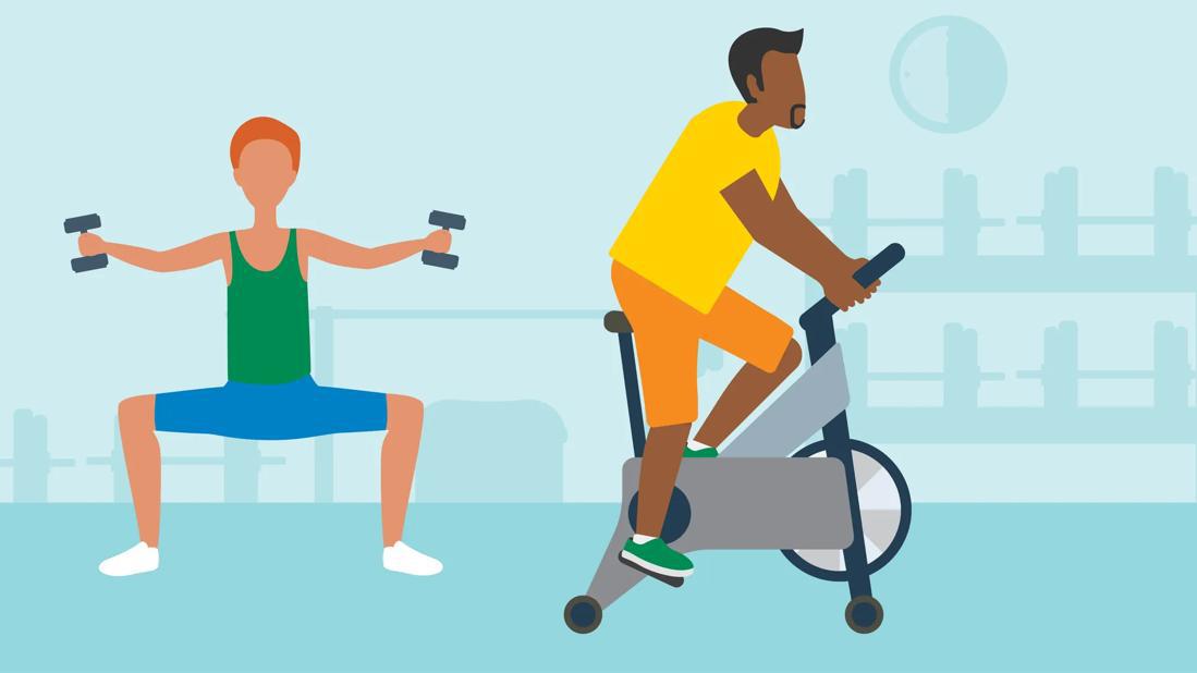 - Cycling:Pedal at a moderate intensity level for five minutes and then slow your pace for two minutes. Repeat as many intervals as desired.