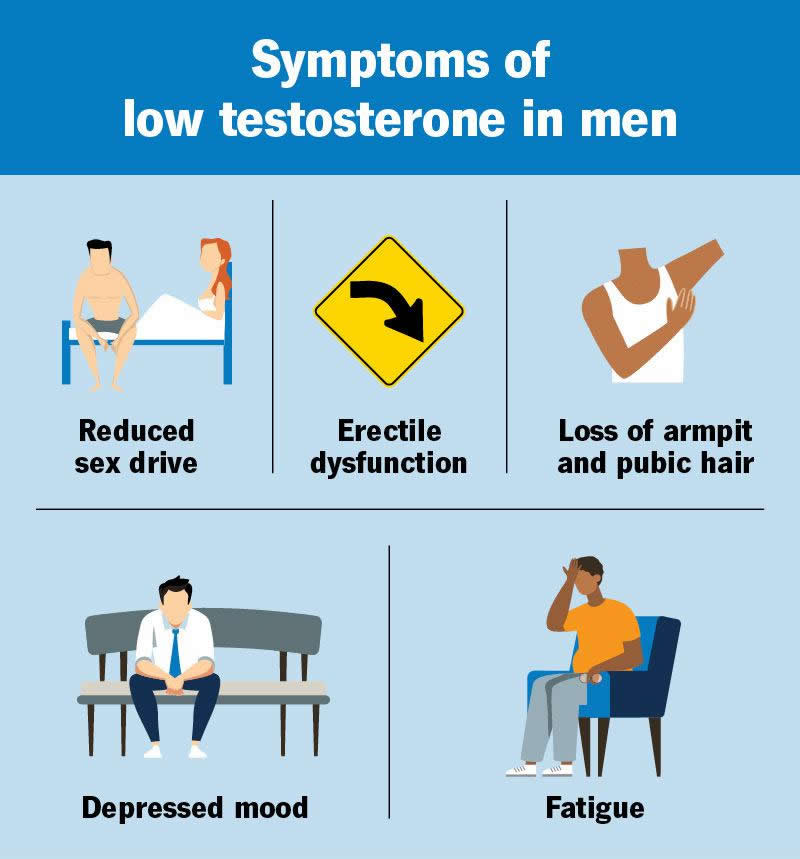 Many people shrug off the symptoms associated with low testosterone as an unpleasant part of getting older. But you should address symptoms that interfere with your quality of life. If you’re noticing bothersome signs of low testosterone, see a provider and discuss your options for treatment.