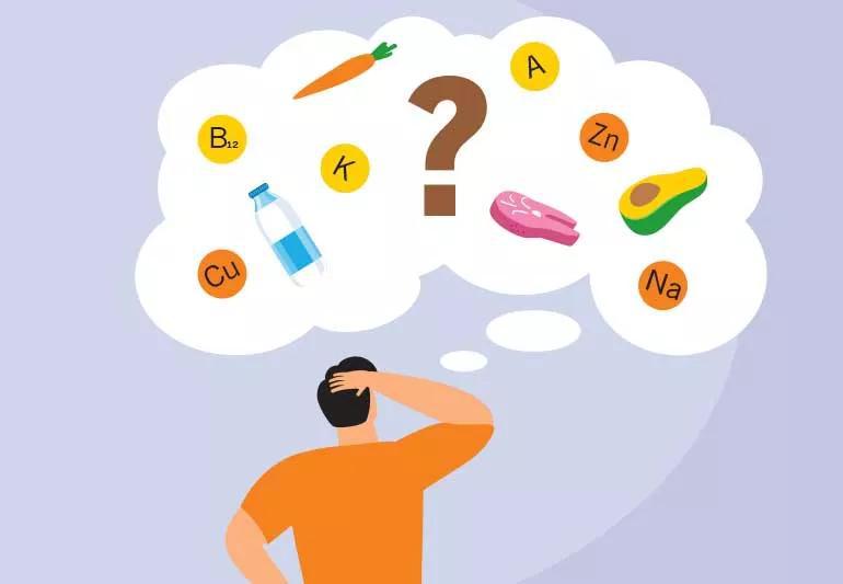 “You want to look at your diet and be sure you are getting food sources from each food group,” notes Zumpano. “Taking a vitamin/mineral supplement can also be helpful, although macros can’t be obtained from a basic vitamin supplement.”