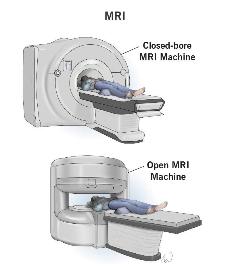However, open MRIs don’t take as clear images as closed-bore MRI machines. Closed-bore MRI machines have a ring of magnets that forms an open hole or tube in the middle where you’d lie to get the images. Closed-bore MRIs are narrow with tight head-to-ceiling space. This can cause anxiety and discomfort for some people, but these MRI machines take the best quality images.