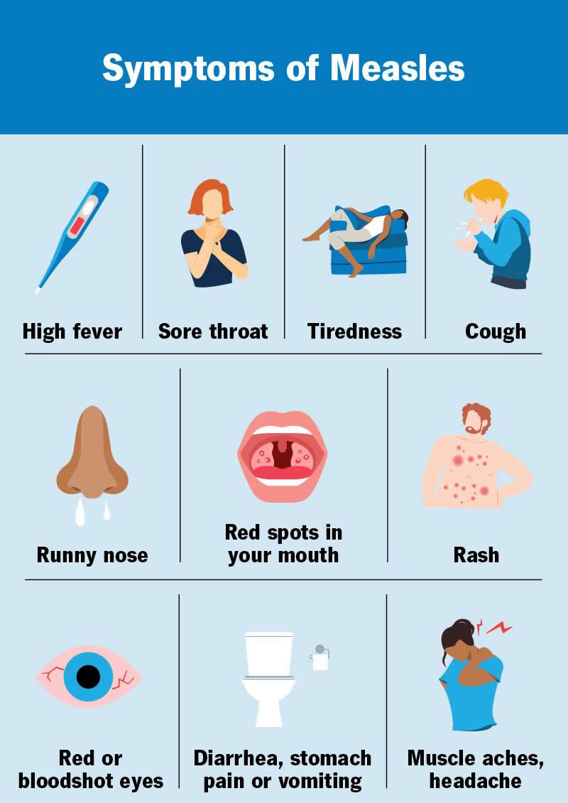 Measles is a highly contagious disease that causes a high fever, rash, cough and red eyes. It can lead to life-threatening complications, like brain inflammation and pneumonia. It’s caused by a virus. Getting the measles vaccine is the best way to prevent getting and spreading measles.