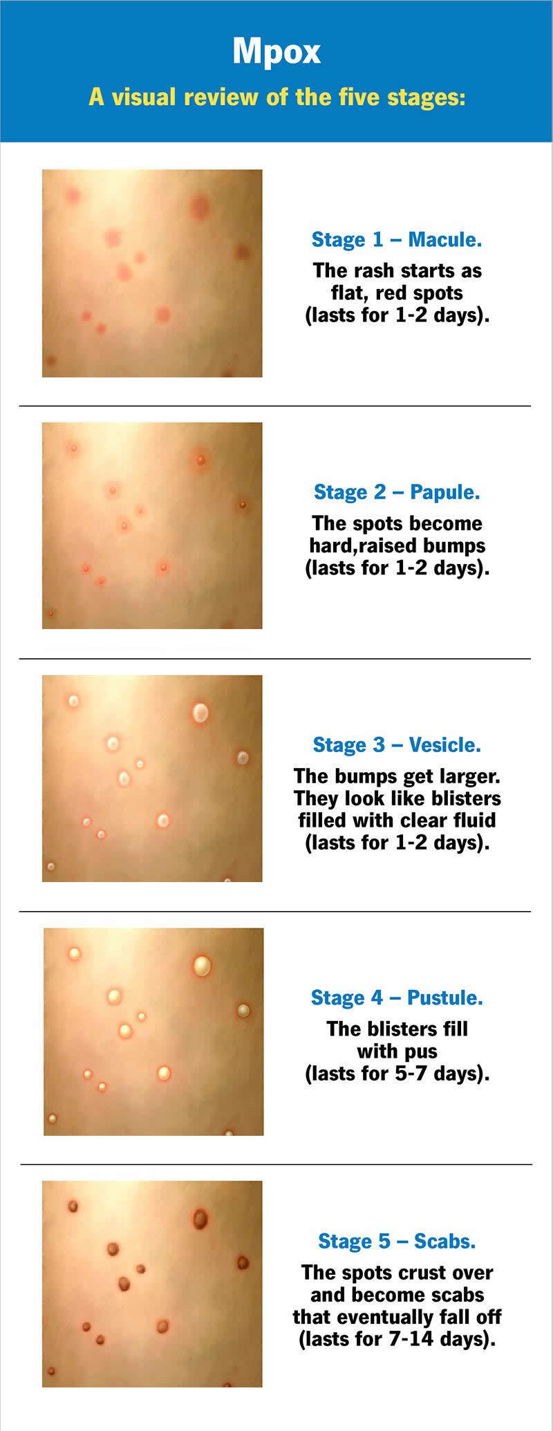 Mpox normally takes about two to four weeks to run its course. Your provider will monitor you until the rash resolves.