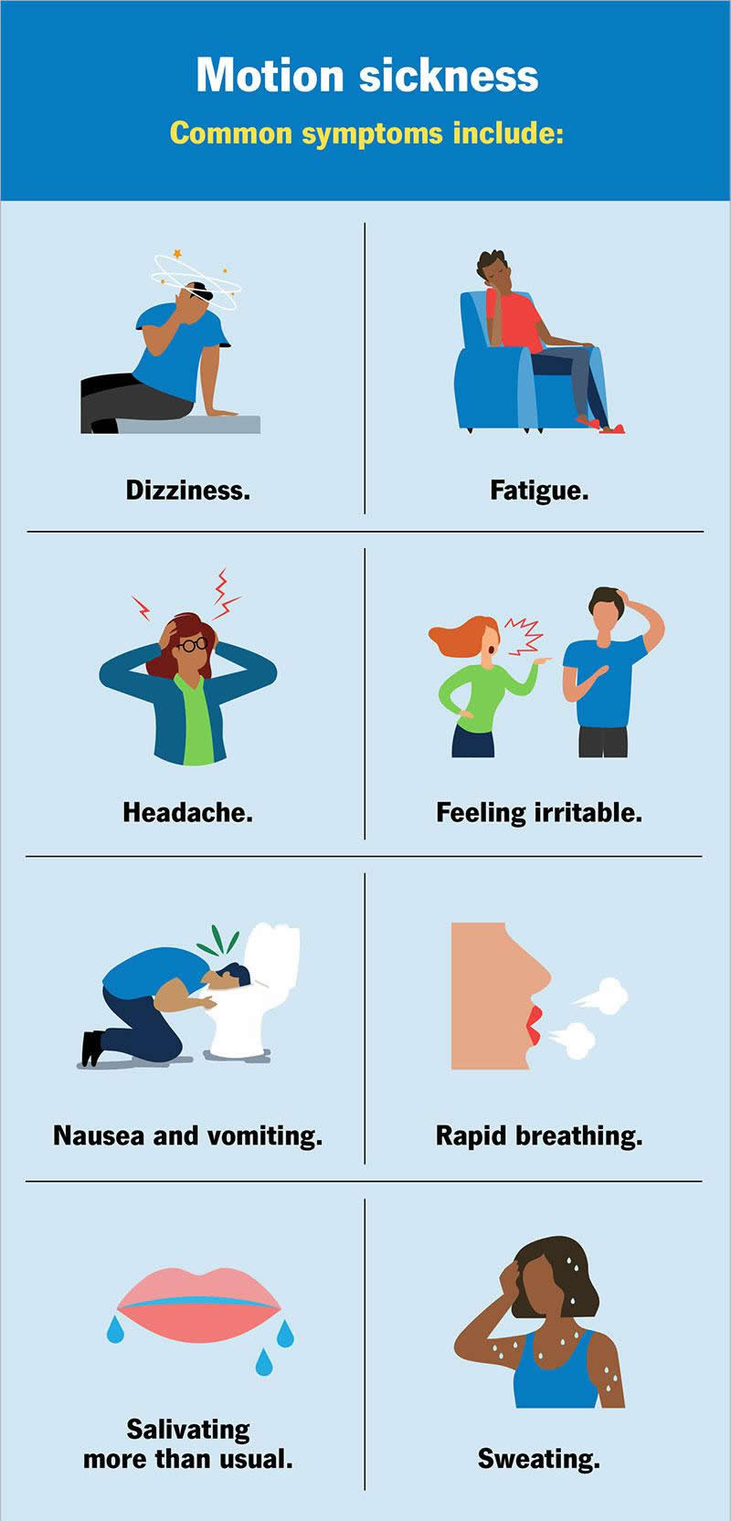 Motion sickness can make travel a miserable experience and take the fun out of playing a video game or an immersive virtual reality game. Fortunately, there are things you can do to prevent it or ease its symptoms. If you’re prone to motion sickness, talk to your healthcare provider about ways to prevent getting sick and what to do if you get sick.