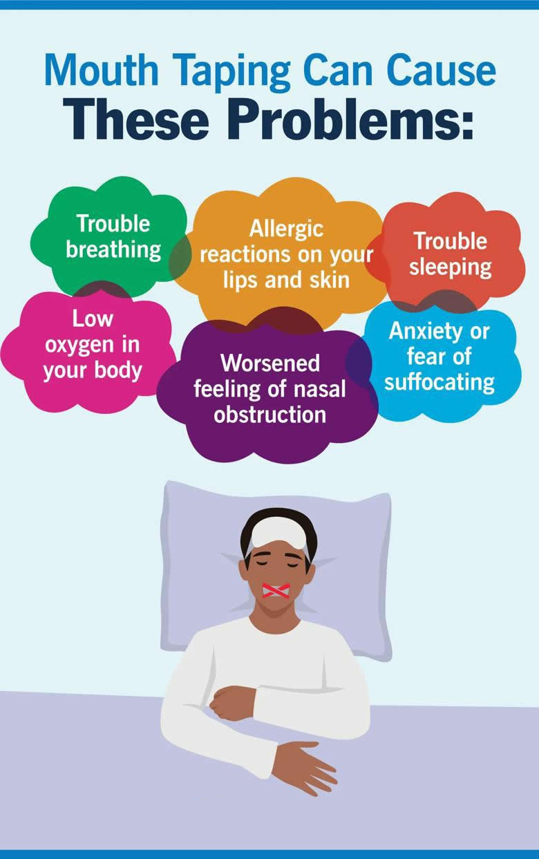 “For individuals already struggling with conditions like nasal obstruction or chronic allergies, mouth taping introduces an unacceptable level of risk,” Dr. Chen emphasizes. “Having your mouth taped closed forces you to rely on only your nose for air, potentially leading to severe respiratory distress, significant drops in oxygen levels and exacerbation of underlying health issues during sleep.”