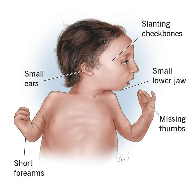 Nager syndrome affects the development of your child’s face, hands and arms. Symptoms of the genetic condition include: