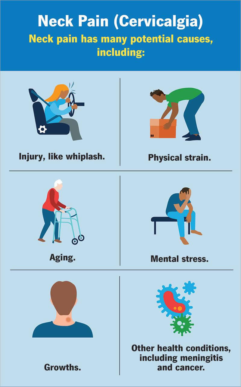 - Other health conditions: Neck pain is a symptom of many health conditions, includingmeningitis, rheumatoid arthritis and cancer.