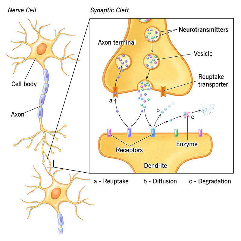 - Are reabsorbed and reused by the nerve cell that released it (a process called reuptake).
