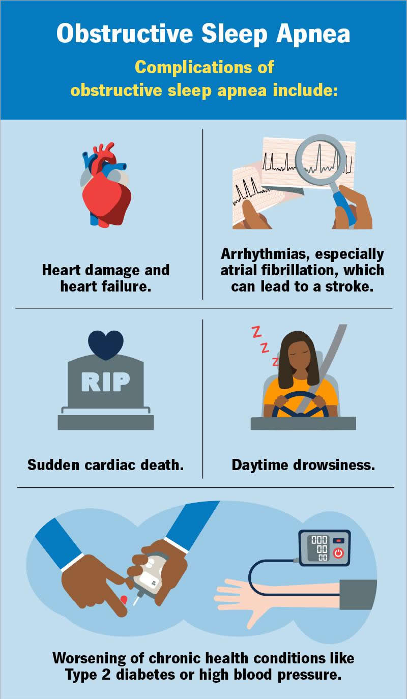 Obstructive sleep apnea can lead to dangerous and sometimes life-threatening complications that may include: