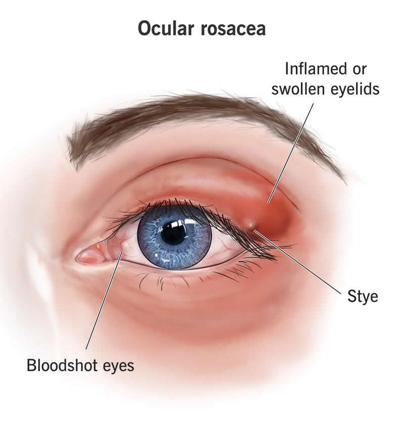 Ocular rosacea is a condition that causes inflammation in your eyes and the skin around them. It’s a specific type of rosacea — a skin disease that causes inflammation and discoloration on your whole face. Healthcare providers sometimes call ocular rosacea “meibomian gland dysfunction.”