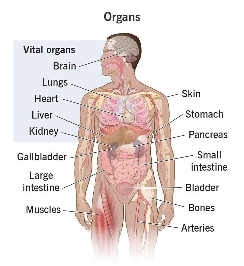 Vital organs are organs that you need to survive. Your body can’t function without them. Some key examples of vital organs include your: